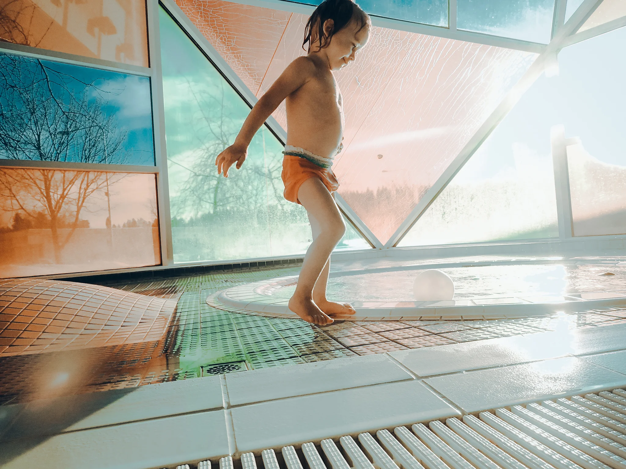 Another week of temperature down to minus 10 degree. It is beginning of March and no end of the winter yet in sight. That is a little heavy. To compensate this, we went swimming on the week-end in the largest swimming hall in the region - FONTANELLA. Because we all love the water a lot. And it was a good time to try out the underwater camera which we have for our work-related expeditions actually. Swimming was - as expected - a hit, she was so excited that she forgot that she actually cannot swim and jumped simply in the deep water. We were there, nothing happened. She splashed like a fish, ran around, from here to there, down the slide, on the matress, through the waterfall, into the whirl pool, she was little bit overstimulated actually. We also enjoyed it a lot and took shifts in holding the fish which gave us some time to swim/work-out, nice. Only when her lips turned slightly blue and she started to shiver we pulled her out and with protest dragged her in the sauna. Afterwards, there was a long deep sleep in the car, perfect. And the camera, what should I say, I like those over- and underwater pictures, but see yourself :)