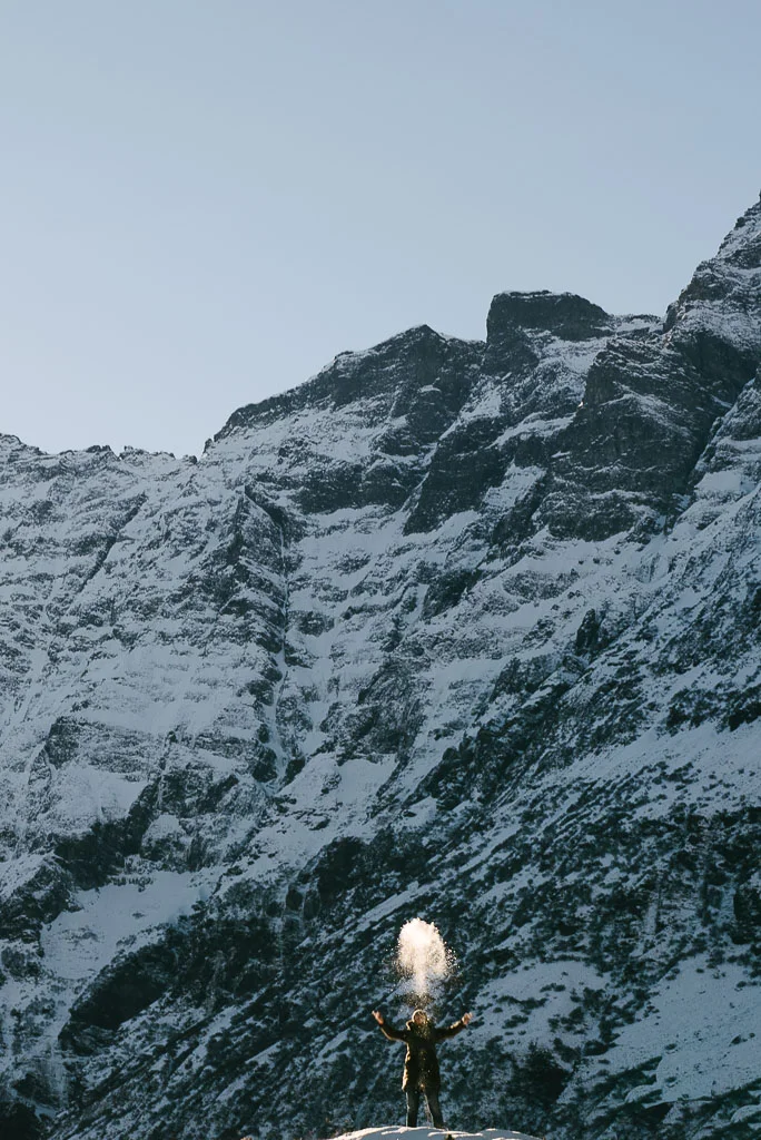 When your baby falls asleep on the car ride to the location - you have to work it out without that fella. Fresh snow in the mountains, not falling from the sky but the other way around